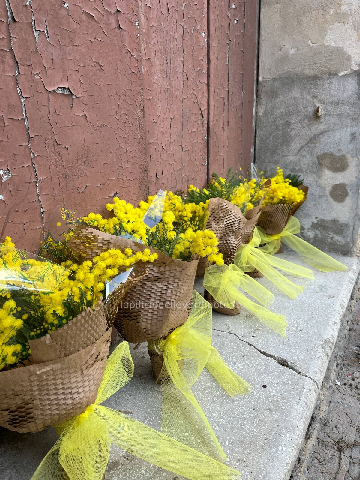 | 3 mazzolini di mimosa, confezionati con carta decorativa e nastrino di tulle o raso Cod. 125629 | € 30,00 | Quantità : | |